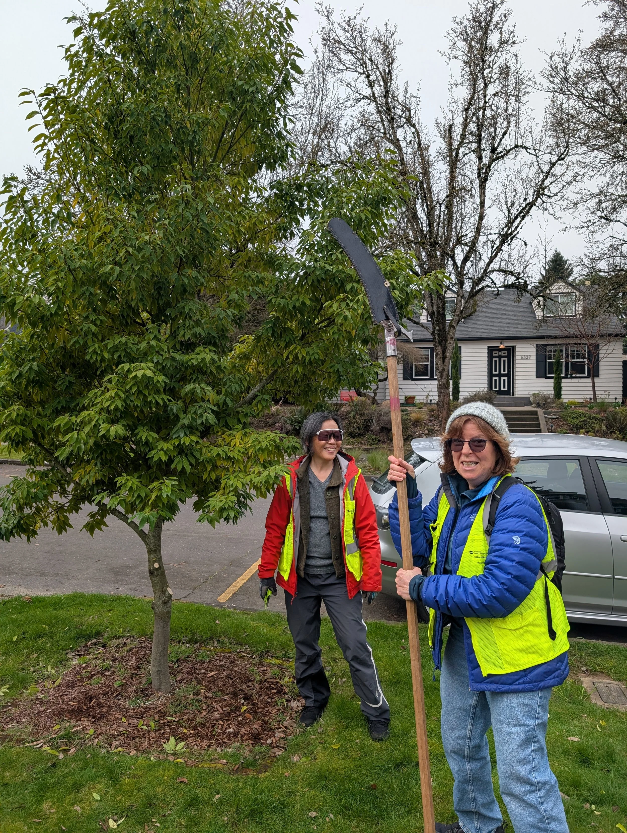 Tree Team teams went out over several days to work on trees. One of the hallmarks of tree pruning is homeowner education, talking with the homeowner about the choices they made and how to care for the tree going forward.